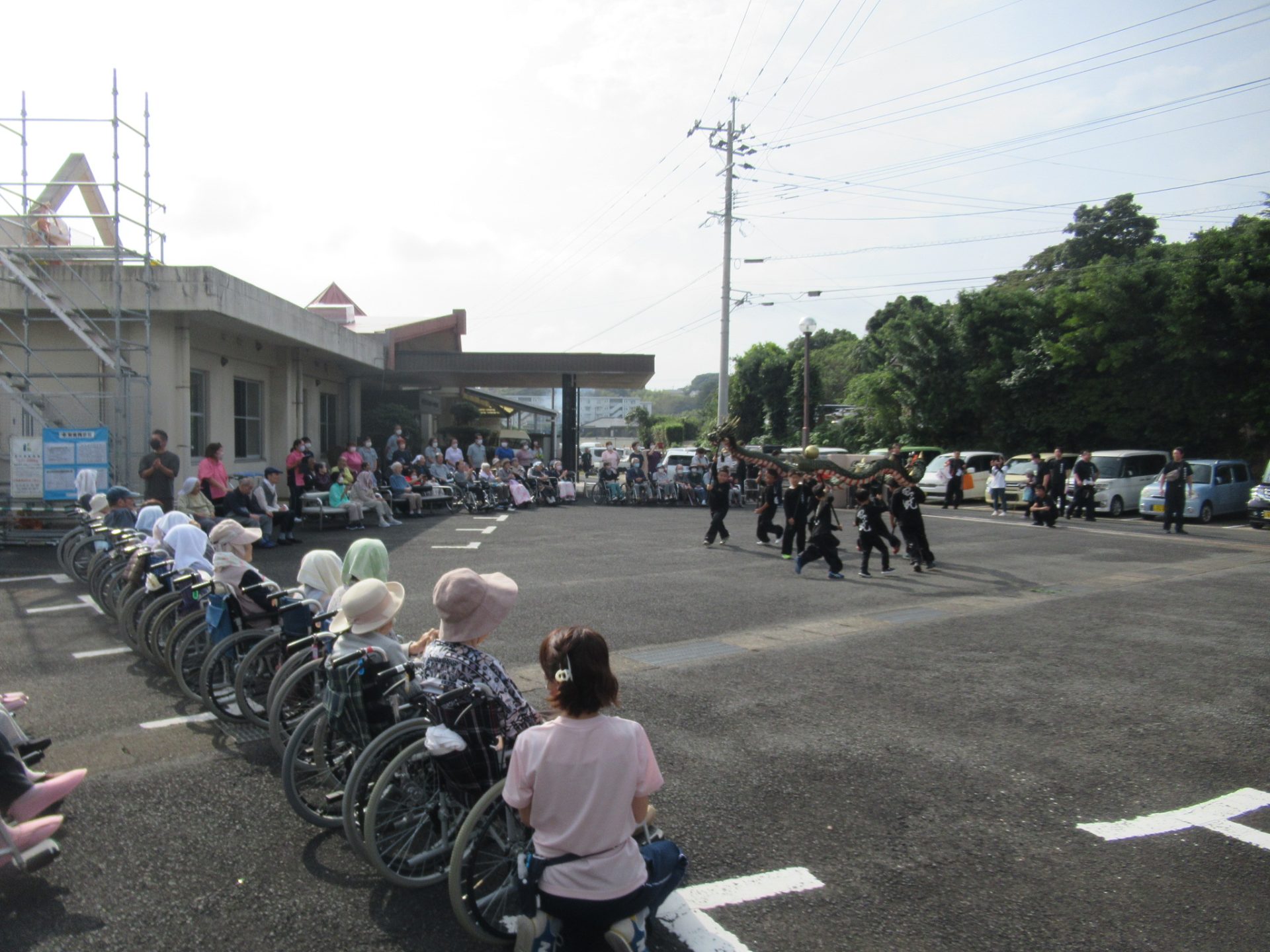 令和6年10月17日御厨くんち「蛇踊り」が青山荘に来設されました。コロナ等でしばらく休止していた蛇踊りも、昨年から再開され、ご利用者様は子供たちの蛇の舞を十二分に堪能され喜ばれていました。昔は娯楽が少なく、くんちは祭であり、楽しかった思い出を思い出していた様子でした。来年も心待ちにしています。
