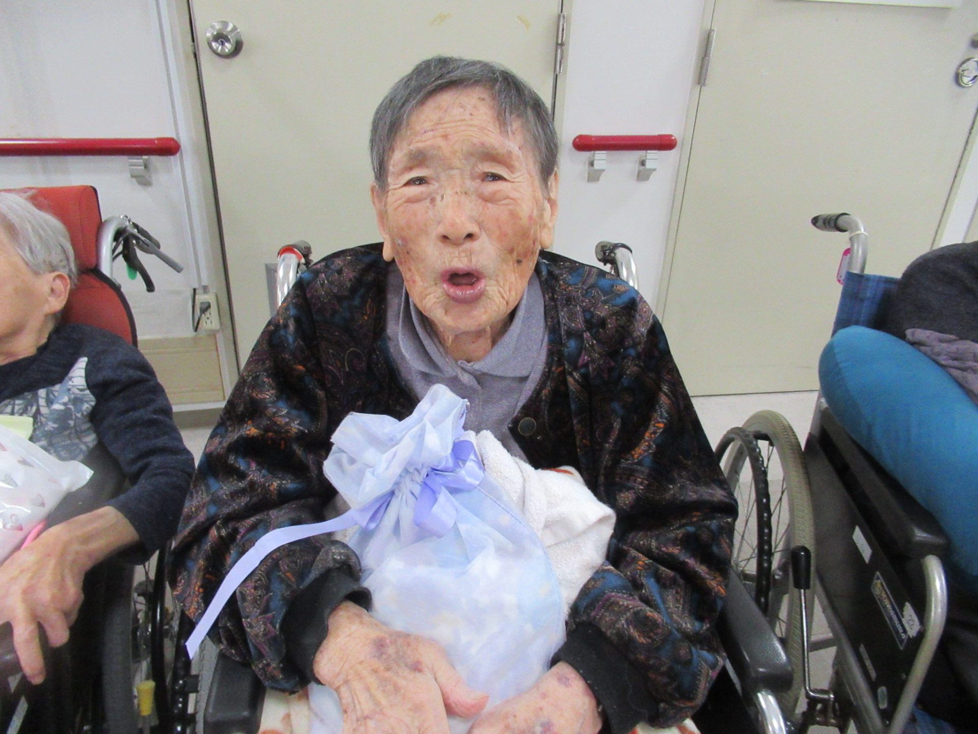 令和6年11月24日(日)誕生会を開催致しました。今月は7名のご利用者が誕生月を迎えました。何歳になっても祝って頂かれる事はうれしく、笑顔で「ありがとね」と大変喜ばれていました。この笑顔がいつまでも続けられるように、私達も努力していきたいと思っています。