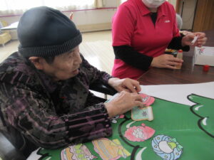 作業に入ると皆様、真剣な目をして、一つ一つ丁寧に楽しみながら貼っていました。次はツリー