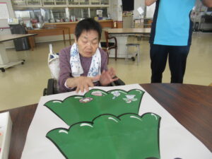 10月も終わりに近づき、一足早い、クリスマスツリーの貼り絵を皆様で作成いたしました。