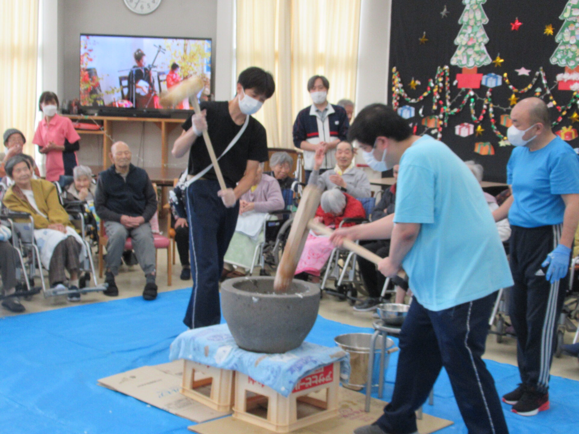 令和7年12月26日(金)餅つき大会が開催されました。青山荘、春風荘の皆様が