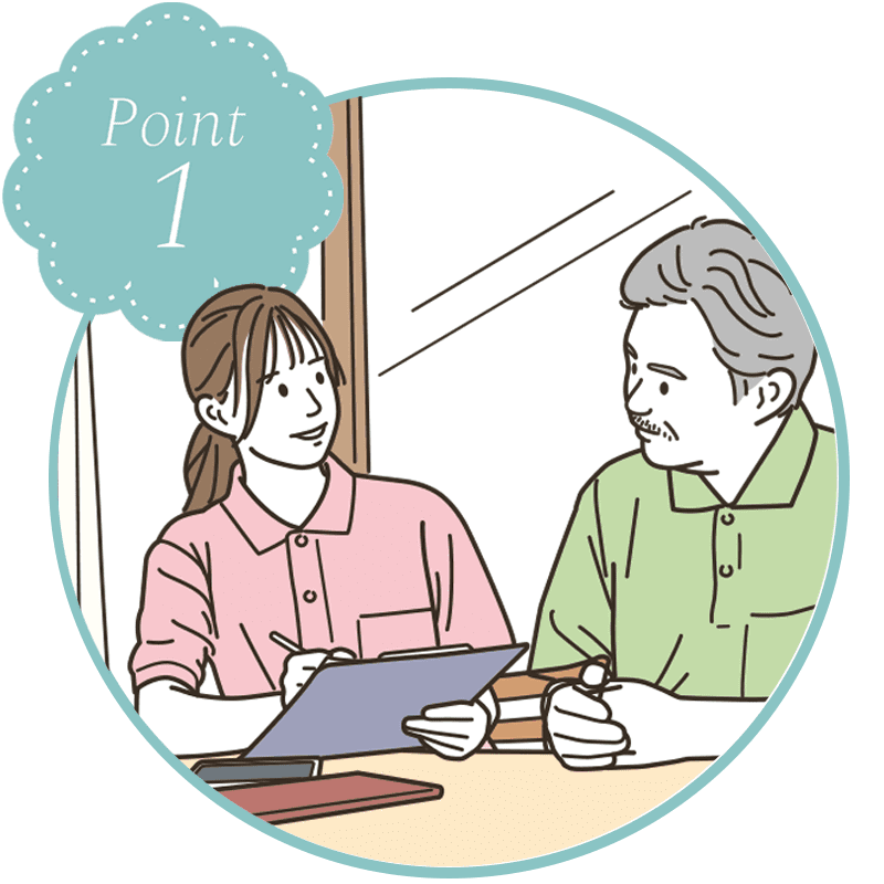 ケアプランを理解し、ケアプランに基づく質の高いサービスの提供を致します。